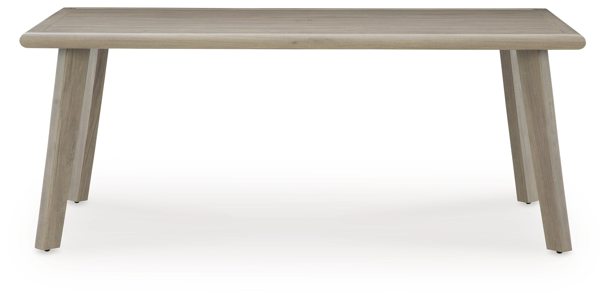 The naturally beautiful look of wood. The potential for endless days in the shade. And did we mention durability? This outdoor dining table is crafted with elevated style and everyday function in mind. With sturdy aluminum construction, it withstands the weather while making a chic statement on your deck or patio. A built-in umbrella hole keeps you covered while entertaining friends and family alfresco.