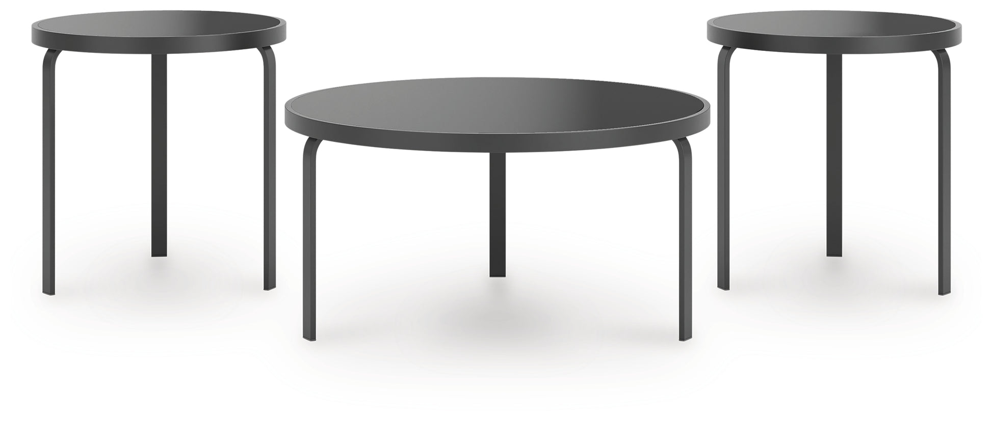 Sleek contemporary style, meet modern versatility. This table set upgrades living room lounging with an added dose of form and function. Clean-lined black metal frames are topped with black glass tops for monochromatic appeal. And with a coffee table and two end tables included, you can add chic convenience sofa-side and to the center of your seating area all at once.