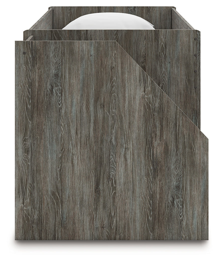 Cool, casual style is for all ages. With this full panel bed, they get the function they need plus the refined design you love. Approachably neutral in a rustic warm gray, it’s adaptable enough to pair with an assortment of existing colors and room decor. And the bed's faux metal detailing with nailhead accents lends an industrial edge.