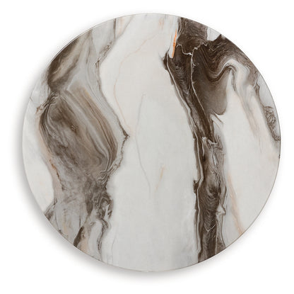 Ultra-contemporary design, everyday convenience. This end table completes your confidently curated living room with its trend-forward pairing of a marble-patterned top and an eye-catching brass-tone frame. Dark wood grain on the legs provides a beautiful contrast. It's well-suited for supporting a sofa-side lamp, holding drinks or displaying decor in sophisticated style.