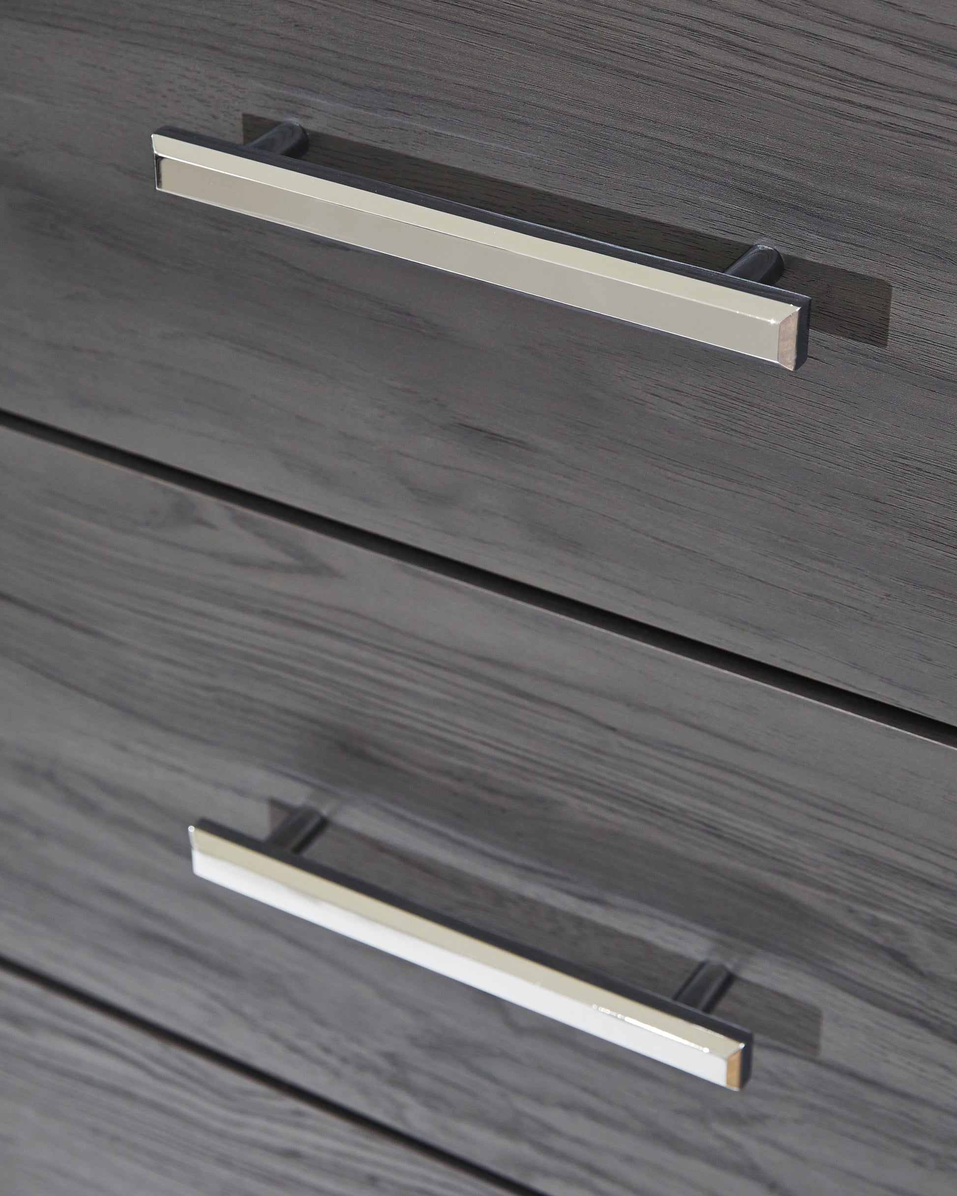 - Faceted chrome-tone pulls and accents